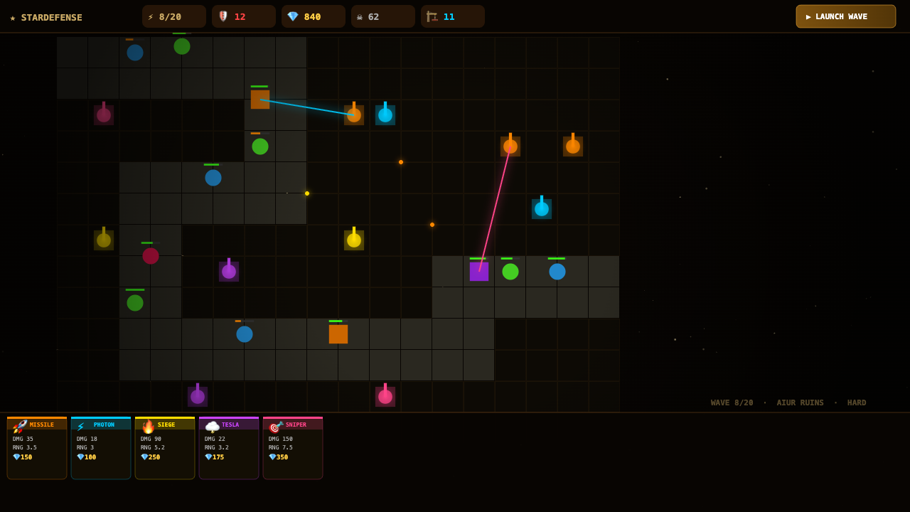 Build missile turrets, photon cannons, siege tanks, tesla coils and sniper towers. Upgrade your defenses, manage your minerals and survive all 20 waves to victory.